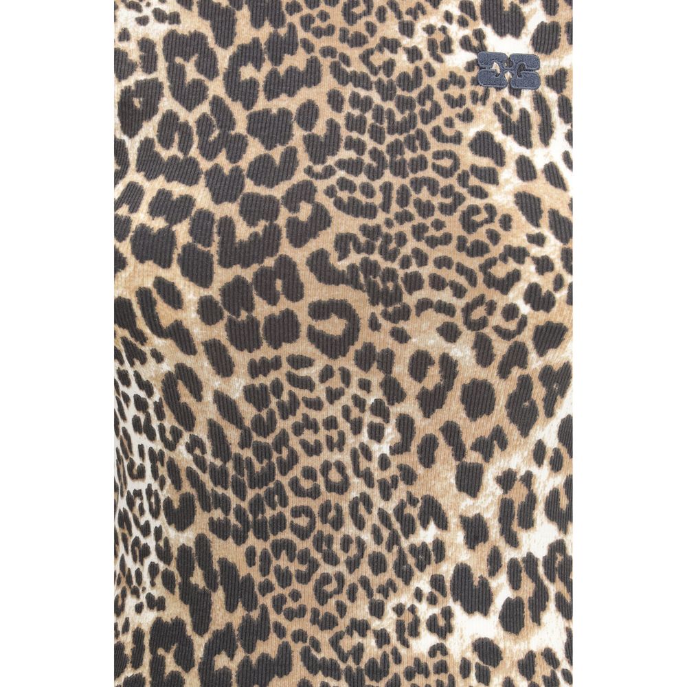 The Leopard Rib T-Shirt By Ganni expresses the brand’s spontaneous attitude through a ribbed texture that elevates the animal-inspired pattern with a modern twist. The round neckline and short sleeves create a clean silhouette, while the Ganni logo adds a distinctive graphic touch. The T-Shirt blends comfort and character, capturing the contemporary energy By Ganni.